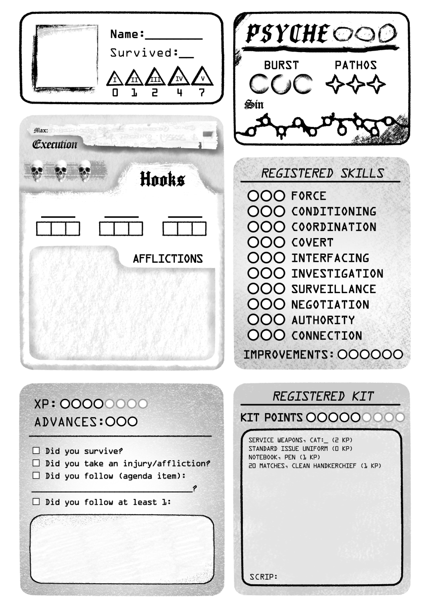A character sheet for CAIN I made after I lost a leg trying to explore the official one.